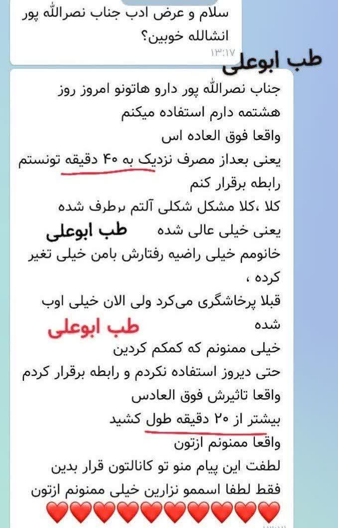این دارو ترکب ۱۲ گیاه کمیاب و مؤثره که مخصوص اختلالات جنسی آقایان هست دورش ۳۰ روزس و با مصرف یه دوره از این دارو درمانتون کامل میشه .