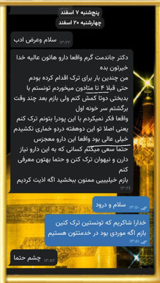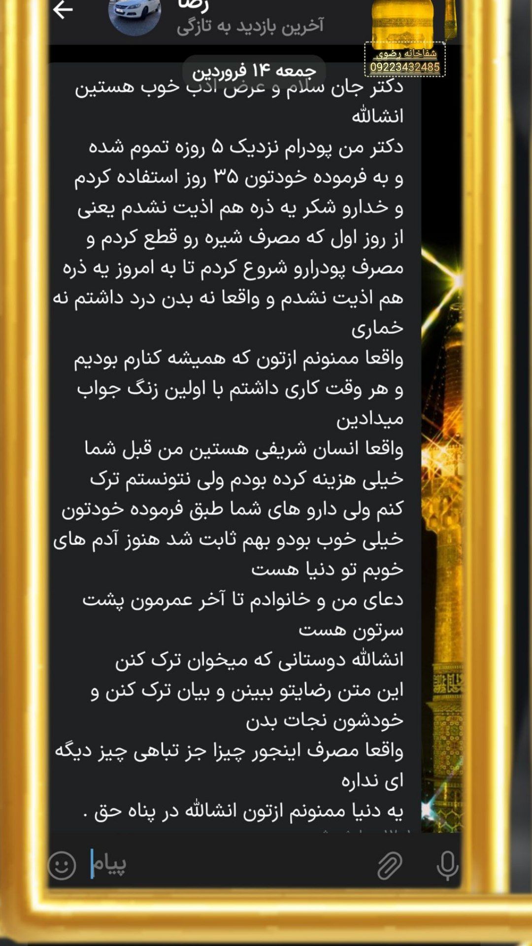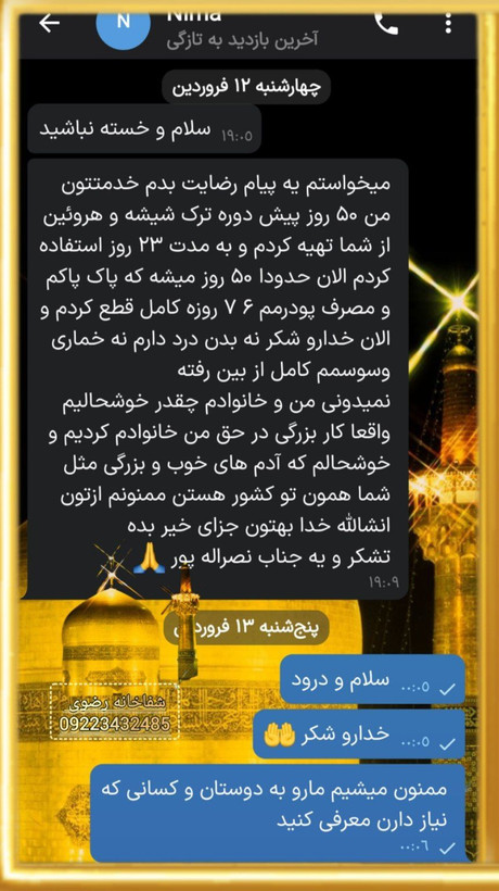 حتما حتما تو کانال ایتای شفاخانه رضوی عضو بشین اونجا نحوه ترک و همه کسانی که ترک کردن رضایتشون گذاشته شده حتما عضو کانال بشید
