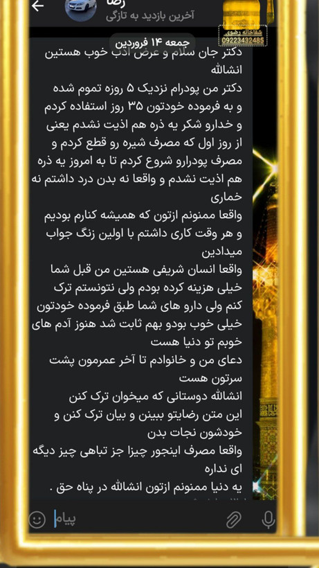مطمعنم دو هفته بعد از استفاده از دارو ها خودت تماس میگیری تشکر میکنی✅️